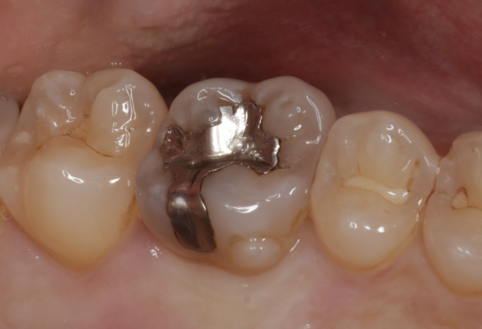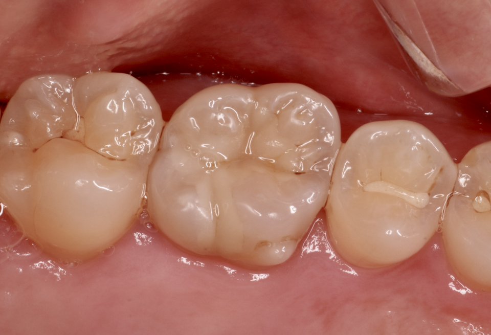 ラバーダム防湿とマイクロスコープを用いた歯髄温存療法後、セラミックインレーにて修復