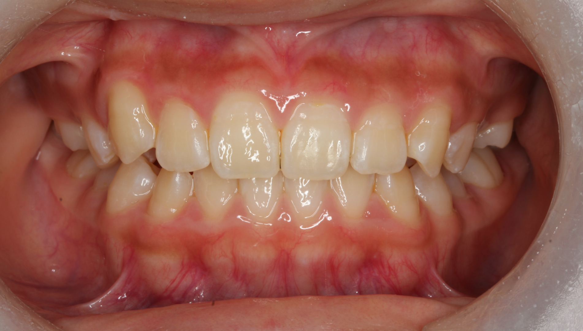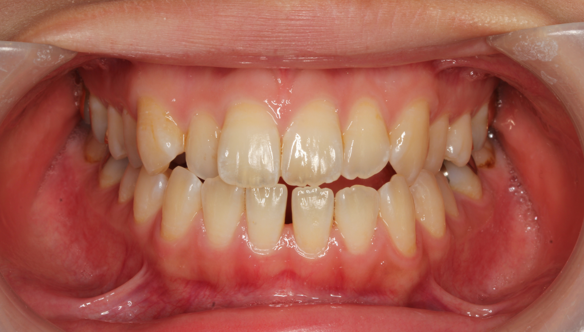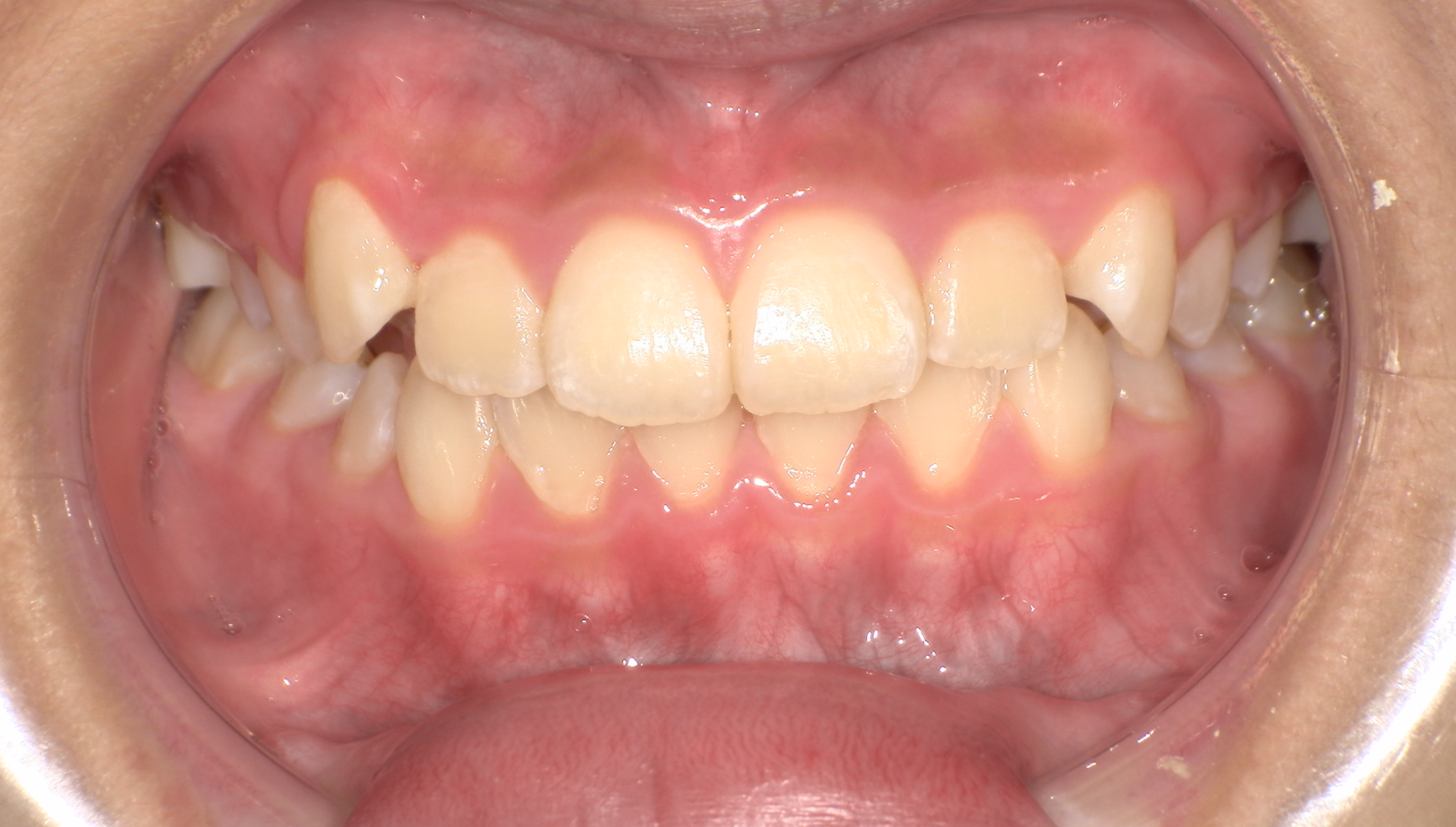 骨格性Ⅰ級、歯性Ⅰ級、前歯部クロスバイト(一部)、前歯部叢生