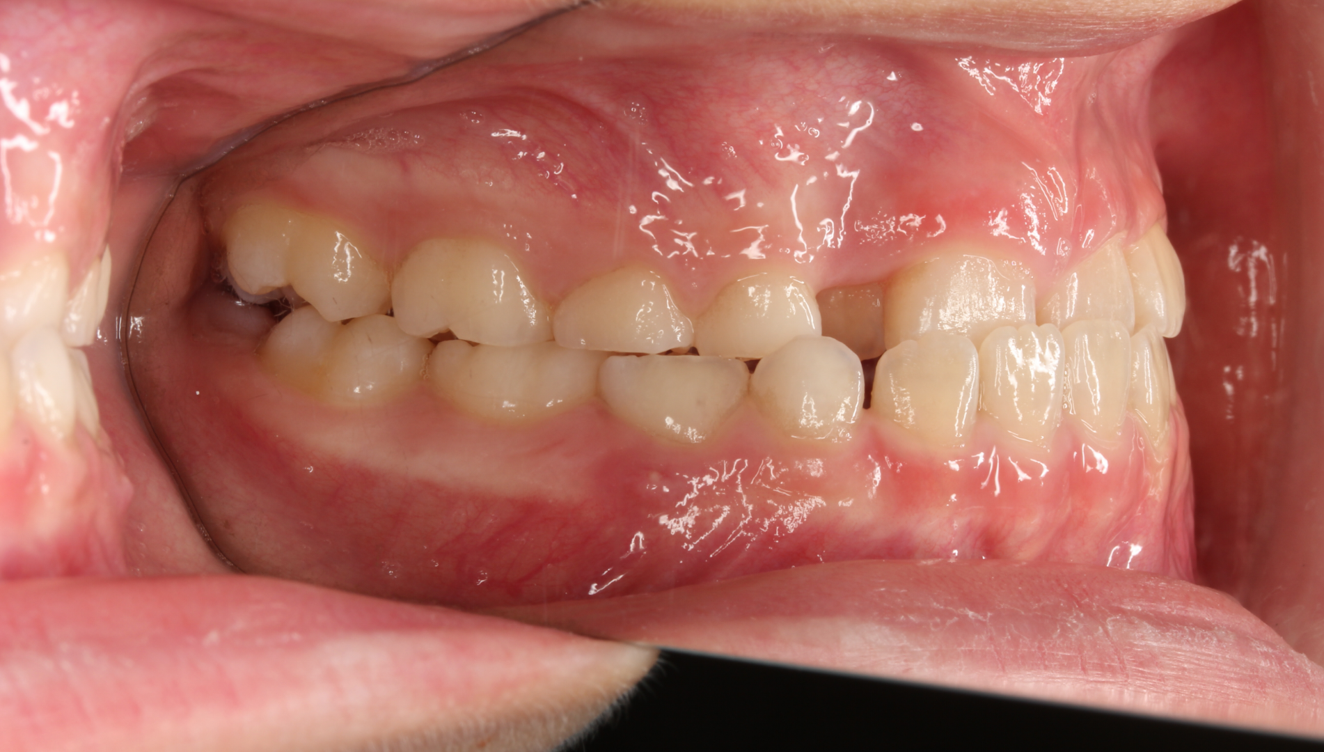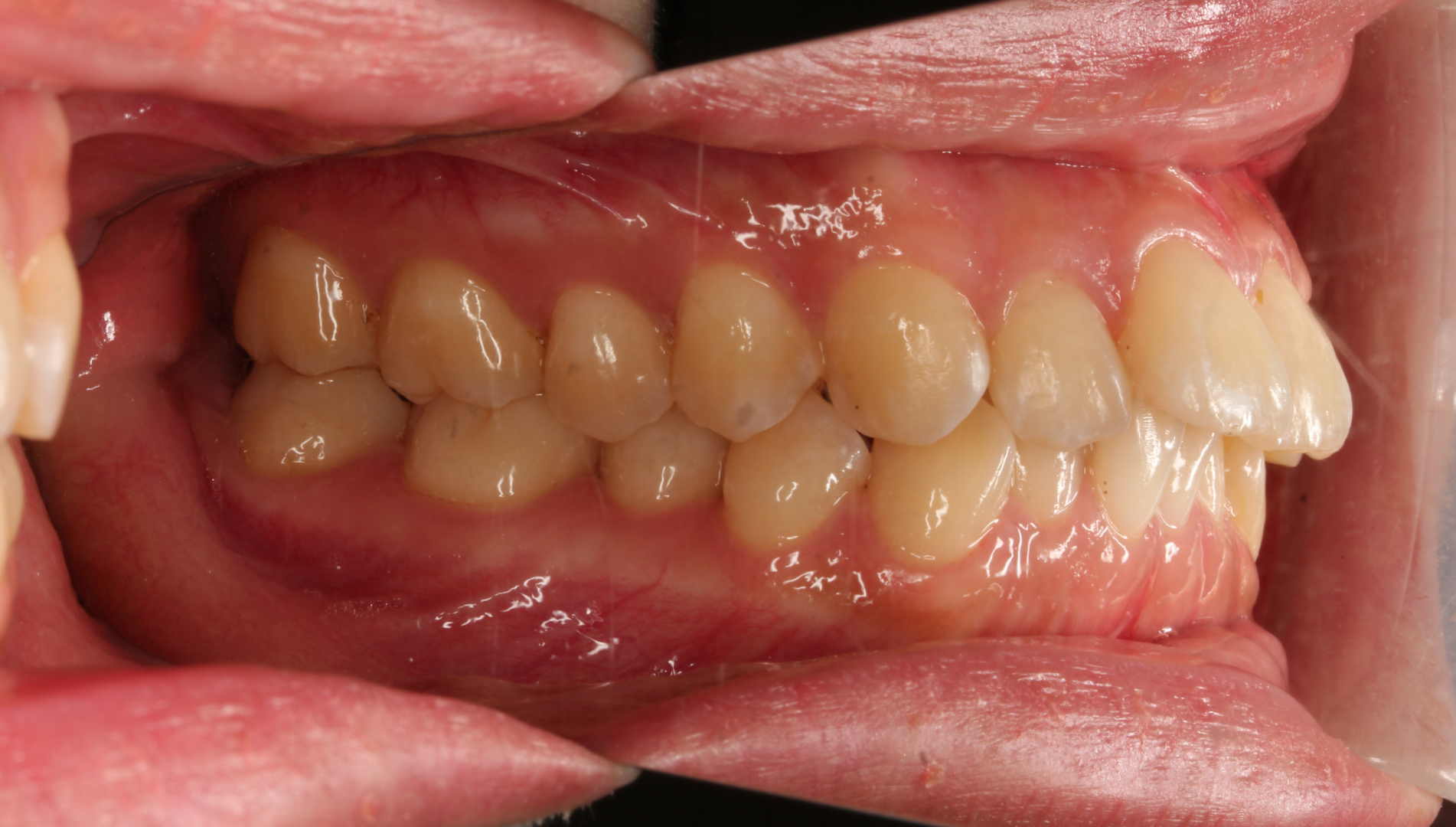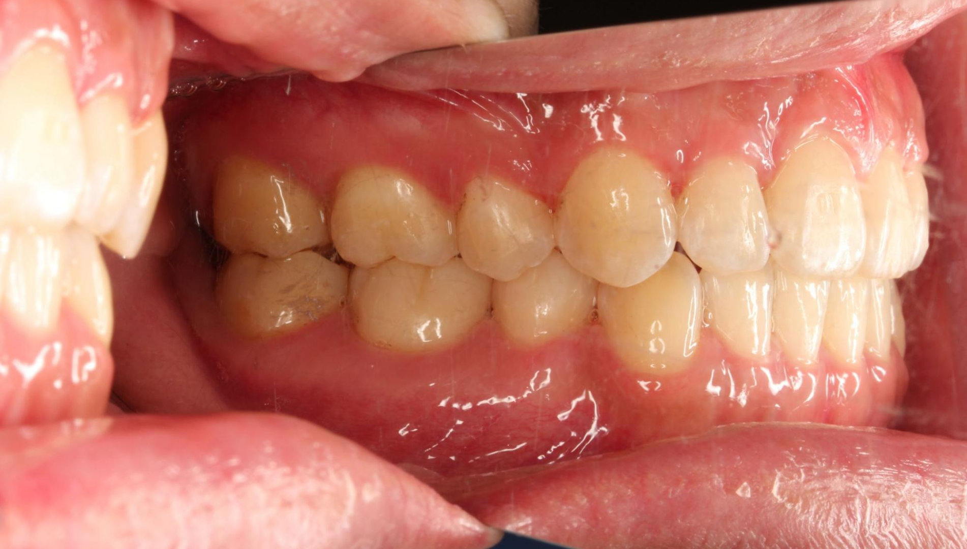 骨格性Ⅰ級、歯性Ⅰ級、前歯部クロスバイト(一部)、前歯部叢生