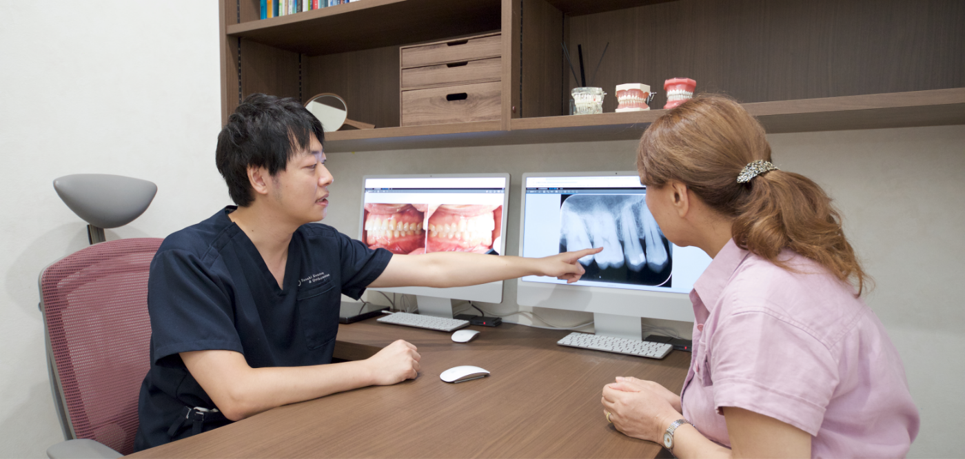 歯周病の症状を改善させるだけではなく、食事や会話が楽しめる様な機能面、下がった歯肉の見た目を改善する包括的な治療を心掛けています。