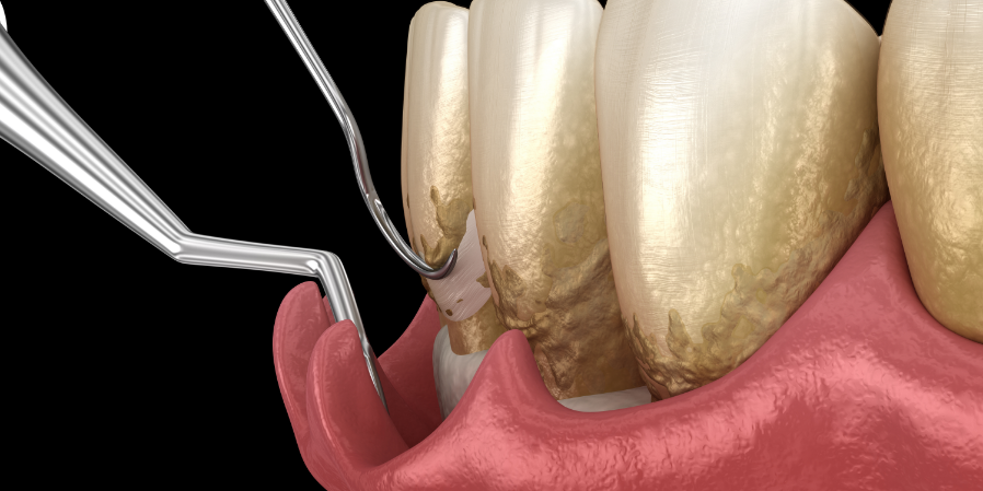 歯周基本治療で取りきれない歯石が歯茎の奥深くにある場合は、歯周外科治療を行い歯根を露出させてから取り除きます。当院は歯周外科を最初から行いません。